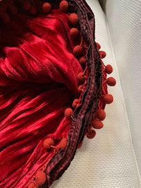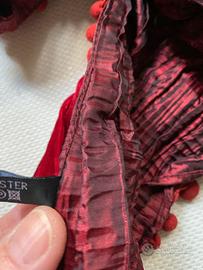 Elegante sciarpa in velluto con dettagli in seta e graziosi pon pon lungo i bordi.