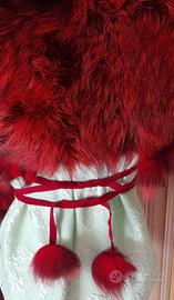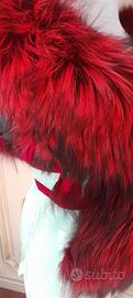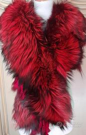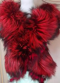 stola in volpe con laccetti per modellarla in varie fogge,terminanti con codette di visone. È nuova con il suo cartellino, collezione Angelo Marani. colore rosso con sfumature nere, è un capo elegantissimo.