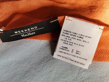 Stola arancione rifinita con frange ai bordi Dimensioni 70x200 cm 85% lana e 15% seta