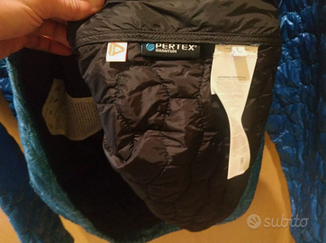 Anorak, con cappuccio, in Pertex Quantum Y, tessuto performante e tecnologico di nuova generazione che coniuga leggerezza estrema ad alta resistenza e durabilità. La struttura unica dei filamenti a forma di Y che formano il filo si incastrano per una costruzione più stabile del materiale e per un aspetto estremamente fluido e levigato della sua superficie. Grazie alla tecnologia DWR (Durable Water Repellency), il tessuto ha proprietà idrorepellenti maggiorate e durevoli sia nel tempo che dopo numerosi lavaggi. Il capo è trapuntato a motivo esagonale con un sottile strato di PrimaLoft®, un’esclusiva mischia di fibre dal diametro ultra sottile che creano milioni di sacche d’aria, conferendo al capo un’eccezionale capacità isolante. È sviluppato per rimanere più asciutto anche da bagnato. Garantisce il più alto rapporto calore/peso tra gli isolanti man made.