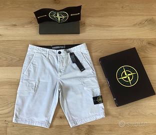 Stone Island Bermuda Nuovo con cartellino e Originale. Certilogo e Qr code in foto. Perfetto Nessun difetto. Leggero e morbido cotone elasticizzato. Colore grigio chiaro. Taglia 30, misure vita cm