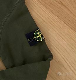 Cotone. Bellissimo colore verde scuro. Felpa con tasca a marsupio e cappuccio con bottoni personalizzati Stone Island. Taglia S. Misure : Spalle cm 44,