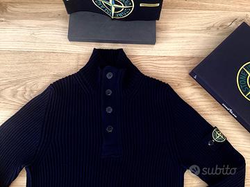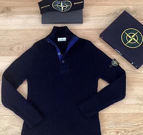 Stone Island Maglione a coste 100% lana con zip e bottoni Originale.