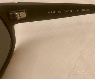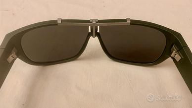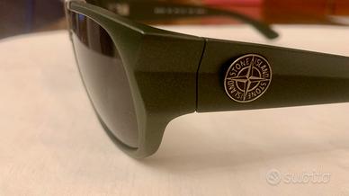 Vendo, in perfette condizioni, occhiali originali della Stone Island, colore verde oliva, lenti scure (NUOVE), finiture argento, senza scatola, materiale plastica (SI utilizza materiali di alta qualità come l'acetato).