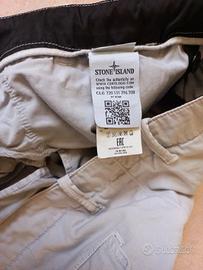 Pantaloni Stone Island in ottimo tessuto di cotone color grigio chiaro taglia W34 girovita cm. 93 lunghezza cm. 108 - Due tasche laterali con patta. Perfette condizioni messi solo 2 volte per cambio taglia.