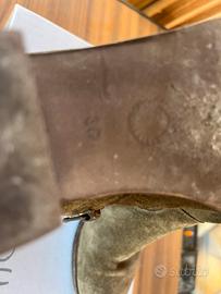 Condizioni buone: presentano normali segni di utilizzo sulla suola (come da foto) e leggere variazioni sulla pelle scamosciata, tipiche del materiale, ma nel complesso sono ancora molto belli e portabili.