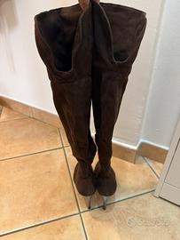 Stivali alti sopra ginocchio in camoscio marrone con pleteau caltaza 7M uguale 37,5 . Con cerniera laterale.