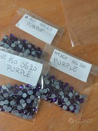 strass in vetro termoadesivi color Viola ( Purple) Ss20 confezione da n 150 pezzi. Disponibili varie confezioni anche da Ss16. Nuovi mai utilizzati ideali per decorare body