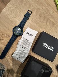 Nuovo Stroli WAH0211 quadrante impermeabile di colore blu/verde fluorescente e cinturino in silicone.