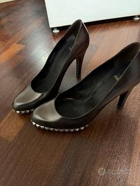 Décolleté in pelle color marrone metallico con dettagli in borchie metalliche. Tacco 11cm Numero 40 come nuove. Utilizzate molto poco