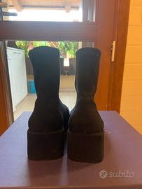 Nuovo stivaletto donna camoscio elasticizzato bleu tacco 4,5 con sacchetto custodia e scatola originale misura 35,5
