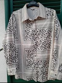 Camicia Anotah con fantasia animalier e dettagli geometrici. - Fantasia beige, nera è verde. - Taglia M. -Nuovo mai indossata
