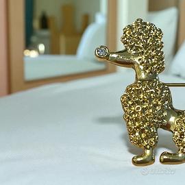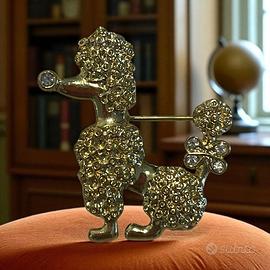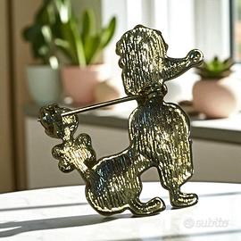 Un lampo dorato, un sorriso da barboncino – e il tuo outfit racconta subito una storia. Immagina di appuntare questa piccola spilla scintillante sul bavero della giacca: all’istante ti ritrovi in un caffè parigino degli anni ’60, fra risate leggere, tacchi che risuonano sul marciapiede e l’inconfondibile fruscio di una “poodle skirt”. Lascia che il tuo sguardo accarezzi la superficie in rilievo – gli strass catturano un raggio di luce e lo restituiscono come un micro-fuoco d’artificio. È una carezza visiva che ti ricorda: sei qui per brillare, sempre. Nel linguaggio segreto degli accessori, questo barboncino è un invito a portare eleganza e ironia ovunque tu vada. Riuscirai a lasciarlo andare o ti sceglierà lui?