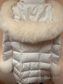Glamour piumino bianco dí Flavio Castellani- pari al nuovo- modello sportivo con cappuccio e bordi maniche in vera volpe- da indossare con abbigliamento casual- taglia S- prezzo di svendita- vero affare- ritiro a mano o spedizione !!!!