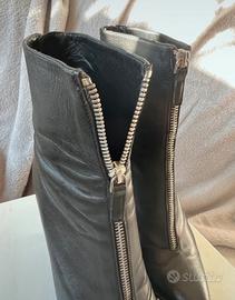 Stivaletti neri in vera pelle marca OUYÉ, numero 40. Indossati solo una volta, in condizioni eccellenti. Zip frontale e borchie decorative. Acquistati a €199. Vendo a €80