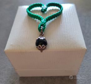 In argento 925‰ con pietra centrale in onice/ossidiana e cuore in corda verde.