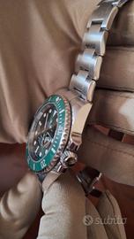 Cedo fa collezione privata sub verde detto ulk anno 2017 usato poco in condizioni perfette completo di tutto mai lucidato ripeto full sett .ci troviamo in vicinanza Pavia con una fabbrica orafa ,la visione avverrà all'interno del cavo oppure brevio accordi dove volete voi per verificare l'autenticità dell'orologio,dichiaro che l'orologio e originale in tutto le sue parti e coevo . non invio video