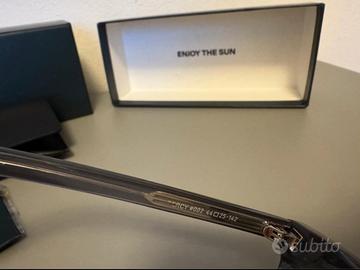 Occhiali da sole con lente color verde montatura simil marmo color grigio