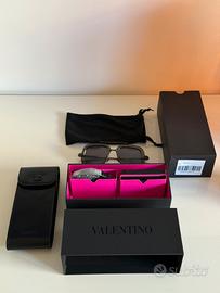 Valentino V LSTORY Flash Mirror Pilot Sunglasses VLS-129 B 50 - Crystal Black/ Brushed black sono eleganti ovvhiali da sole aviator realizzati in Giappone. Presentano una montatura in titanio nero spazzolato giapponese e accetato nero cristallo. Doppio ponte in titanio con iconoche borchie Valentino e lenti griggio scuro specchiate con protezione UV al 100%. Dimensioni: Calibro 50mm/ ponte 21mm/ asta 140mm Prezzo euro 450 (prezzo negozio euro 710) Vendo perche’ mi e’ stato regalato lo stesdo paio!