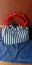 Vendo borsa in tela di Desmo, la borsa è a righe Beige e Nere con decorazione in pelle Rossa e manici Rossi.