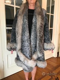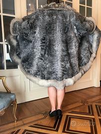 Superba pelliccia a mantello di vero pelo di PERSIANO tutto bordato in vera volpe argentata.