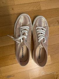 Scarpa superga 2750 LAMEW rose platinum misura 39,5 mai indossata.