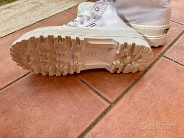 Superga stivaletto bianco. Scuola gomma bianca alta. Numero 36. No scatola originale. Unico difetto una macchiolina gialla sul davanti (come in foto)
