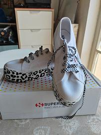 Superga platform in tela bianche e nere numero 38 con due tipi di lacci da scegliere in ottime condizioni