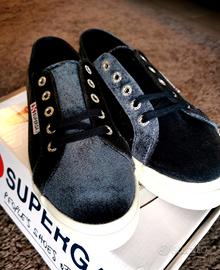 Superga platform nuove in velluto blu scuro, platform alte 3cm
