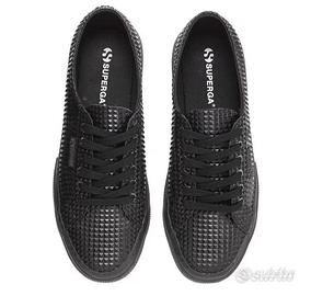 Scarpe Superga allblack con rivetti, borchiette in gomma. edizione limitata. Taglia 42. Indossate una sola volta per errore di taglia. Perfette come nuove