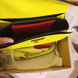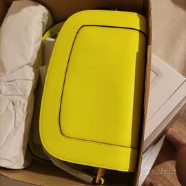 Meravigliosa borsa a tracolla tinta unita in vera pelle Valentino Garavani modello SuperVee misura L. Colore esterno Lime, finiture metalliche in ottone anticato, bordi neri a contrasto sulle cuciture e all'Interno, in cui spuntano piccoli tocchi di rosso firma della maison. Nuovo in scatola originale, dustbag originale e certificati di artigianalità nella lavorazione della pelle e dei metalli. Colore estivo freschissimo, mai usata, mai tolte nemmeno le protezioni alla chiusura magnetica. RRP 2880$ e questa é proprio come uscita dal negozio! Misure 27x18x7 cm