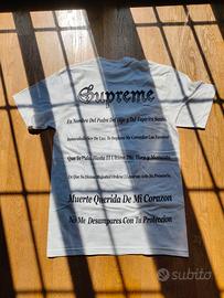 Maglietta in cotone Supreme con grafica stampata sia davanti che sul retro, disegno originale di Art Dealer. Maglietta nuova taglia S (sold out sul sito), insieme alla maglietta veranno inviati anche lo sticker e la busta. Maggiori informazioni e/o foto non esitate a contattarmi!!😉