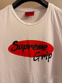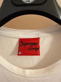 T-shirt Supreme Grip, taglia M, materiale cotone. Unico difetto: piccola macchia vicino zona vita(come dimostrato in ultima foto). Lunghezza 66 cm. Da ascella a ascella 47 cm. Spalle 40 cm.