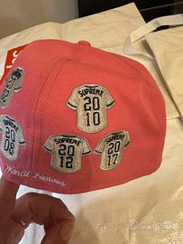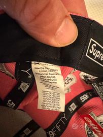 Vendo Bellissimo cappello Supreme Jerseys Box Logo New Era Fitted Hat, taglia 7 5/8, colore Rosa.