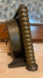 Lo stile del design, con la sua cassa in ottone brunito e la forma decorativa a colonne arrotondate, suggerisce che l’orologio risalga agli anni ’30-’50. Questo tipo di design era comune nei modelli Art Déco e nei primi orologi da viaggio meccanici con funzione sveglia ,
