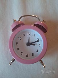 Sveglia piccola rosa simpatica alta 5 cm. diametro 5 cm.