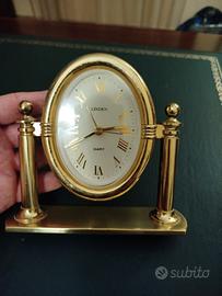 Bellissima sveglia vintage Linden in ottone massiccio piccola sveglia ovale da tavolo al quarzo. Perfettamente funzionante.