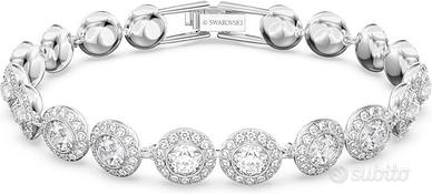 Il braccialetto rodiato propone una fila di Clear Crystal a taglio circolare, ognuno incorniciato dal pavé di Clear Crystal