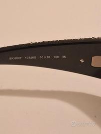 Occhiali da sole Swarovski donna modello 6027 full rim in iniettato nero con lenti grigio specchio nero base 8 decentered. Vestibilità a ponte alto. Linea: Science of Elegance