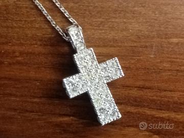 La parure è composta da una catenina (lunga cm 48) con la sua croce di pietre brillanti e da due orecchini con pietre uguali. Si conferma che tutti i pezzi sono originali.