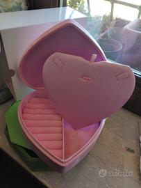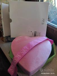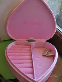 Swarovski portagioie a forma di cuore in velluto rosa, due piani sovrapposti per collana, orecchini , anelli, bracciali. Nuovo con scatola originale e patch dell' articolo. Mai usato. Perfetto. Collezione 2026.