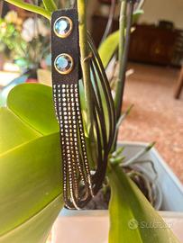 Swarovski Black Slake - Bracelet Girocollo Bracciale in pelle con cristalli Swarovski