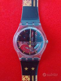 Per collezionisti e tifosi bianconeri, vendo rarissimo Swatch Access modello "Juvecentus" (codice SKK103), creato nel 1997 per celebrare il Centenario della Juventus (1897-1997). L'orologio presenta un design iconico con quadrante trasparente che mostra il meccanismo, lancette gialle e il logo del centenario sul passante del cinturino. Il cinturino è decorato con le stelle e i colori sociali della squadra. DETTAGLI: Modello: Swatch Access Juvecentus. Anno: 1997. Condizioni estetiche: Molto buone, cinturino integro e grafiche ben conservate come da foto. Particolarità: Funzione "Access" per servizi interattivi dell'epoca (chip integrato). NOTA SUL FUNZIONAMENTO: L'orologio fa parte di una collezione rimasta ferma per anni. NON È STATO TESTATO con una batteria nuova, pertanto viene venduto come non funzionante / da testare con la formula "visto e piaciuto". Ideale per chi vuole completare la propria collezione di memorabilia juventina o Swatch storici.