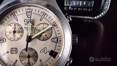 Vendo Swatch AG 2002 Reloj Swatch AG 2002. Cinturino con doppia chiusura di sicurezza e cassa in alluminio. Quadrante bianco. Vintage, da collezione. Perfettamente funzionante nella sua custodia originale. Display Analogico. Tipo di movimento Cronografo. Spese spedizione incluse.