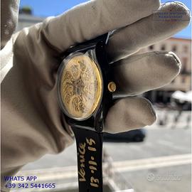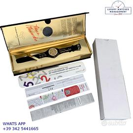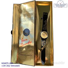 Orologio originale Swatch in ogni sua parte, molto raro, edizione limitata di soli 999 esemplari, esemplare personalizzato il 13 Novembre 2015 con la firma originale dell’artista nella confezione e sull’orologio in occasione della Biennale d'Arte di Venezia del 2015, nuovo mai indossato, senza segni di usura, full set (scatola, accessori vari, garanzia ufficiale Swatch), garanzia/dichiarazione di vendita nostro negozio valida per 12 mesi.