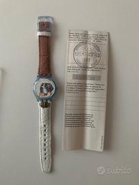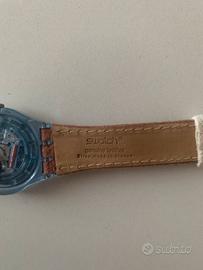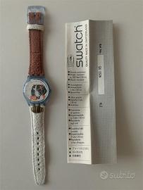 Vendo orologio Swatch originale anni ’90, edizione dedicata alle Olimpiadi di Atlanta 1996. Orologio Swiss Made al quarzo, funzionante, completo di: * scatola originale trasparente Swatch Atlanta 1996 * documentazione e certificato Il cinturino originale in pelle è in ottime condizioni. Condizioni generali buone considerando l’età (vedi foto reali). Caratteristiche: * Movimento al quarzo * Water resistant 30m * Swiss Made Contattami per qualsiasi informazione.