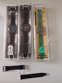 - Swatch mod. "Saphire Shade" collezione 1991, meccanismo funzionante ma le plastiche della cassa per l'aggancio cinturino sono rotte in entrambi i lati, il cinturino in metallo può essere riutilizzato.
