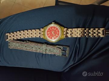 Swatch automatico anni 90 con cinturino originale a fianco grigio in tessuto, quello in acciaio è stato comprato a parte.