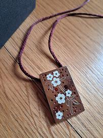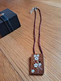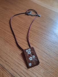 Vendo collana in acciaio inox, è un pezzo della collezione "Chinese Garden" di Swatch Bijoux, lanciata originariamente intorno al 2006. Ciondolo rettangolare in acciaio inossidabile, misura cm 3,5 x cm 2 con cordino in raso color bordeaux/vinaccia, misura cm 40 + 5 chiusura a moschettone.