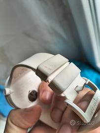 Non ha graffi sul vetro, la fibbia si è leggermente sporcata come in foto, ma è normalissimo su questi modelli, segnalo solo per precisione.